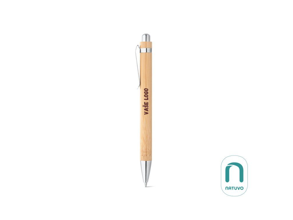 Bambusové kuličkové pero spojuje přírodní vzhled s funkčností, kterou od pera očekáváte každý den. Tělo z bambusu dodává produktu přirozený charakter, zatímco kovová spona zvyšuje odolnost a celkový dojem.
