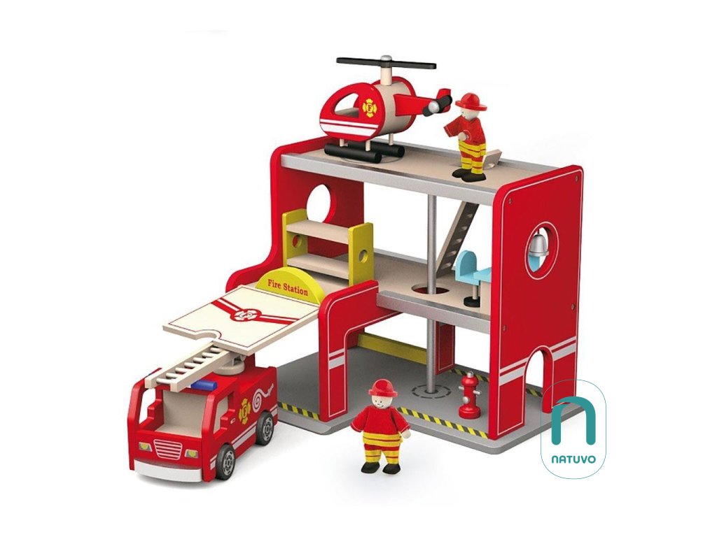 Dřevěná hasičská stanice od společnosti Viga patří mezi nejkrásnější a nejodolnější hračky pro děti. Je navržena tak, aby podporovala kreativitu a umožnila dětem zažít vzrušující hasičská dobrodružství. Součástí stanice je garáž s hasičským autem, společenská místnost pro odpočinek hasičů, kluziště pro vrtulník a skluzavka pro rychlý přesun k zásahu.
