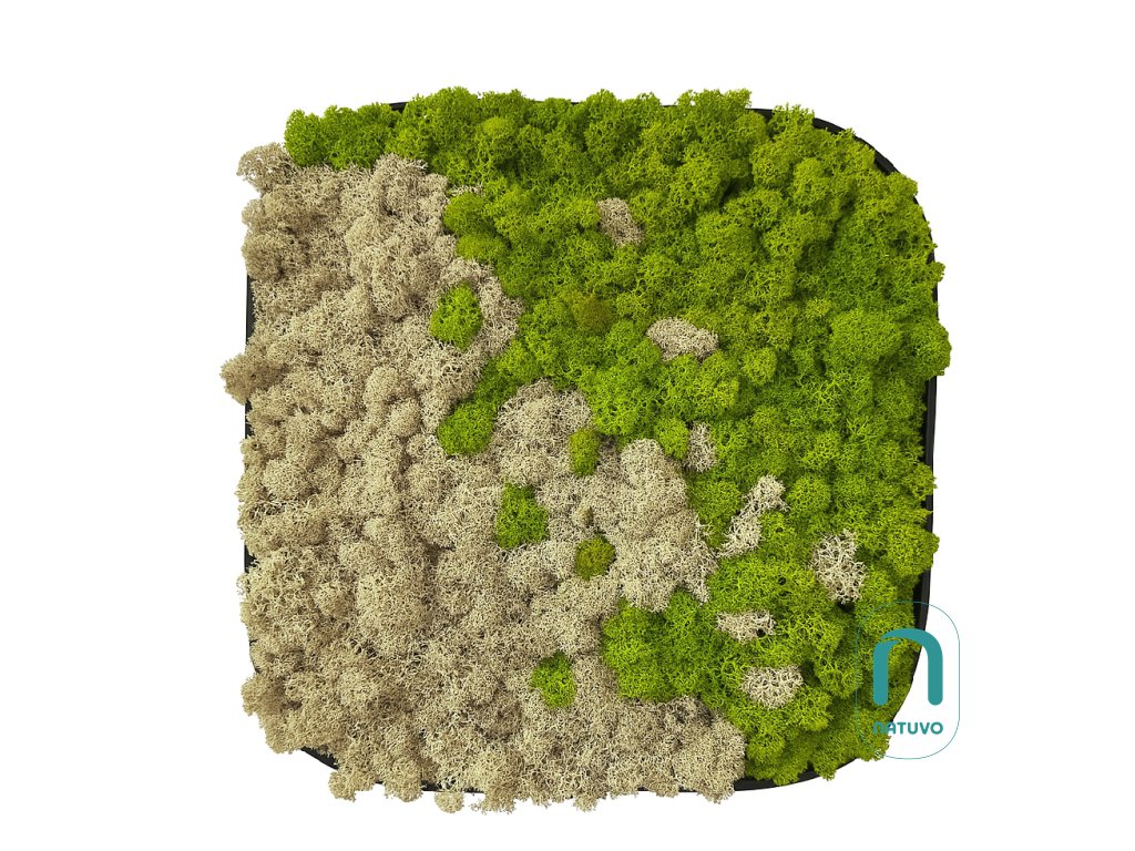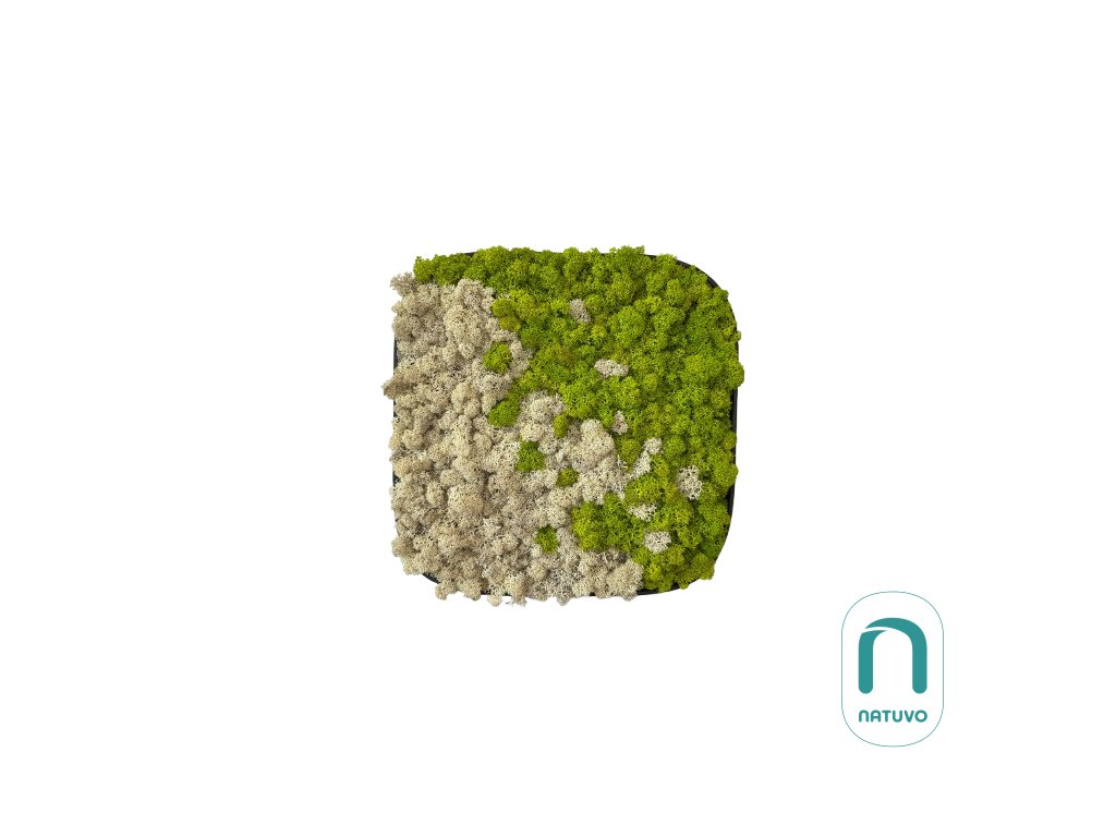 Mechový čtverec s oblými hranami - Lilo s jemně oblými hranami vyniká svojí přirozenou krásou a minimalistickým designem. Každý obraz je ručně vyráběn a zaručuje originální kousek přírody přímo ve vašem interiéru. Díky stabilizaci si mech i lišejník zachovávají svoji svěžest a jemnost bez potřeby jakékoli údržby – nevyžadují světlo ani zalévání.