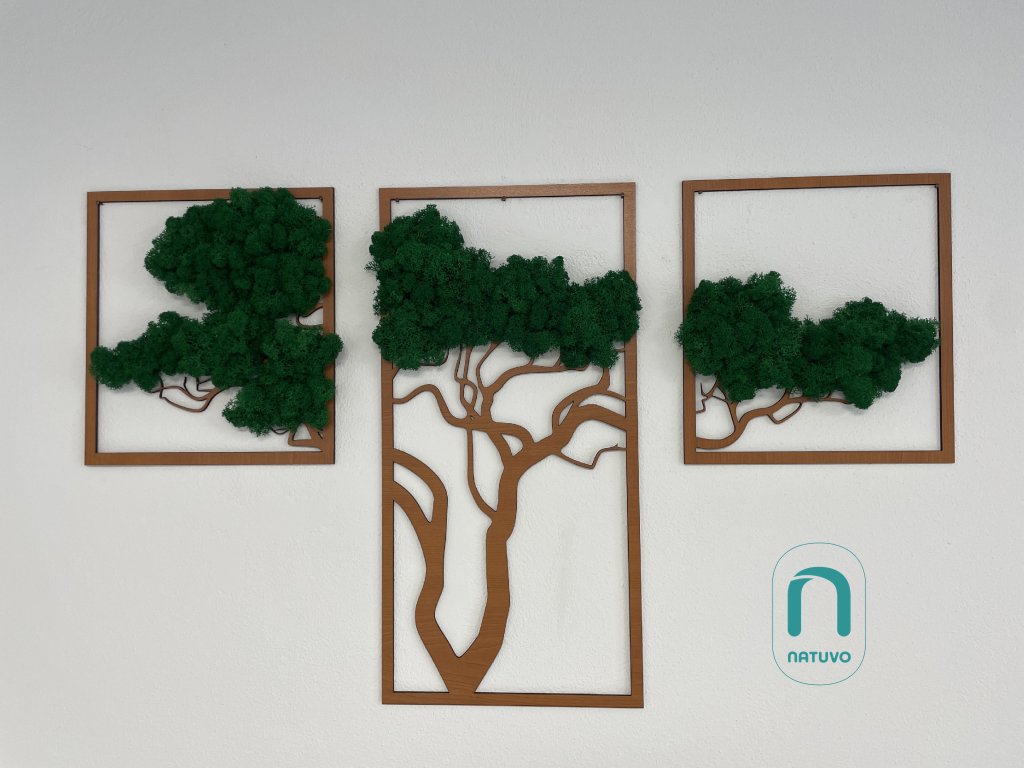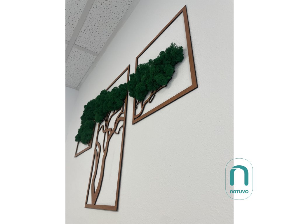 Tento mechový obraz vnese do prostoru svěžest, klid a kousek přírody – ideální do obývacího pokoje, kanceláře, vstupní haly nebo relaxační zóny.