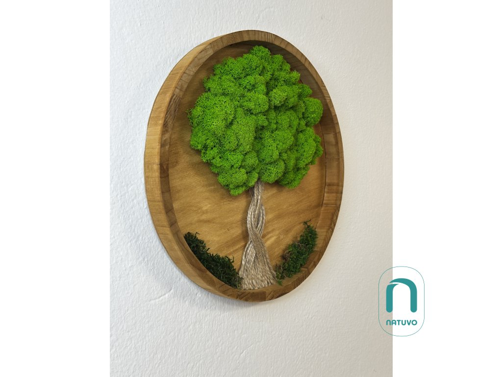 Mechový obraz živý kruh se stabilizovaným lišejníkem je velmi vkusný doplněk interiéru. Působí v místnosti moderně, nadčasově a do interiéru přinese pozitivní atmosféru.