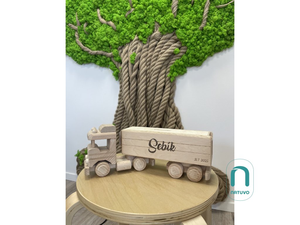 Toto dřevěné nákladní auto je jedinečná hračka, která kombinuje zábavu s praktickým využitím – jeho přívěs slouží zároveň jako pokladnička. Je ideální pro děti, které si chtějí hrát a zároveň se učit, jak si ukládat své první úspory.