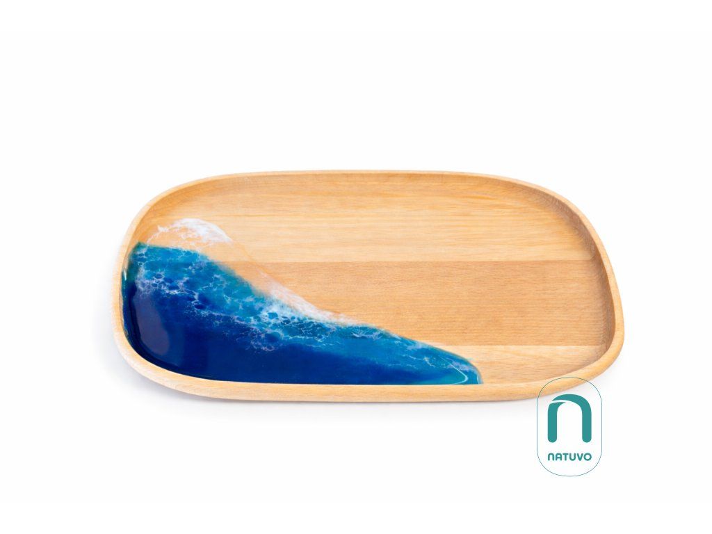 Každý kus je originál, vyrobený ručně a s důrazem na detail. Kombinace přírodního dřeva a lesklého modrého epoxidu vytváří dojem, jako byste měli před sebou malé umělecké dílo – ale zároveň praktické a funkční.
