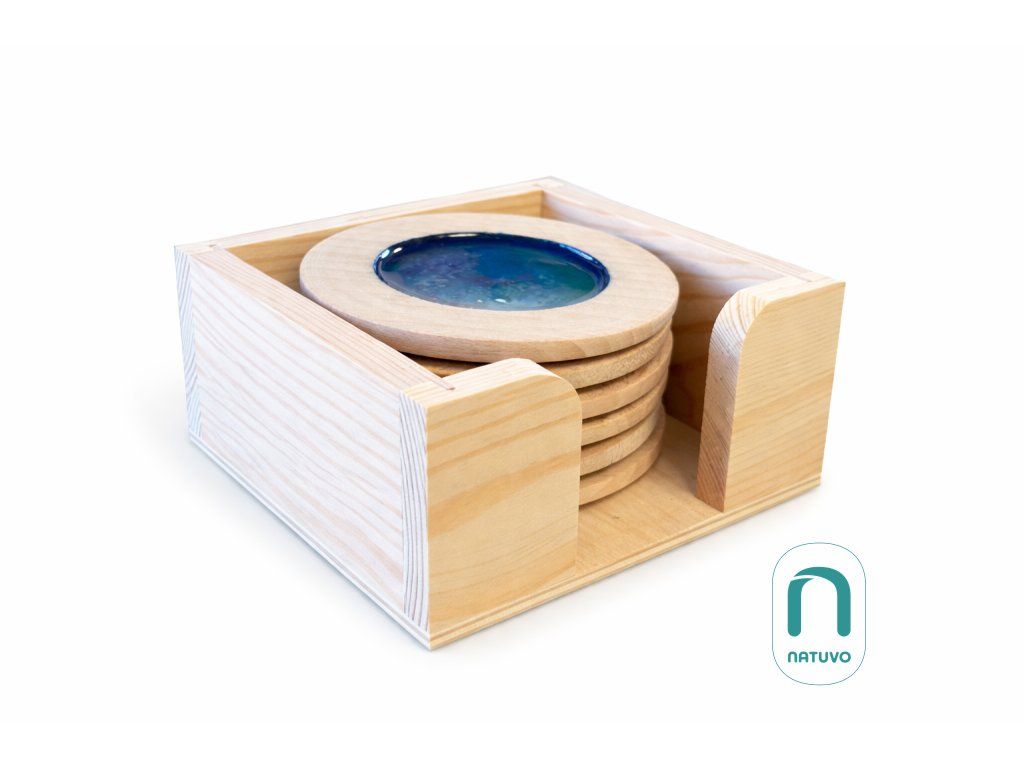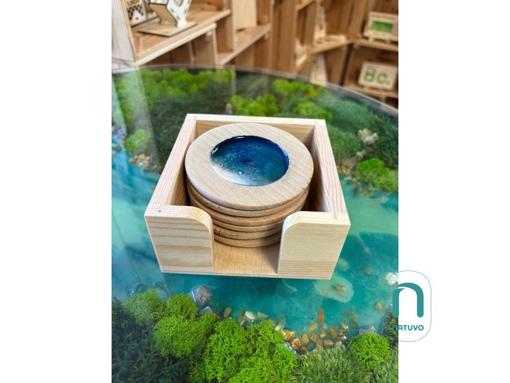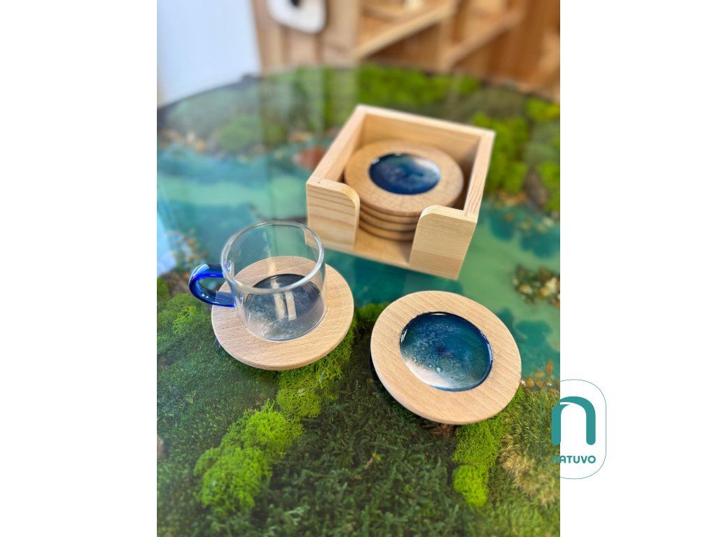 Tato sada podšálků je vyrobena z kvalitního dřeva a epoxidové pryskyřice, která vytváří jedinečný efekt mořské vlny. Díky ruční výrobě je každý kus originální – žádné dva podšálky nejsou úplně stejné.