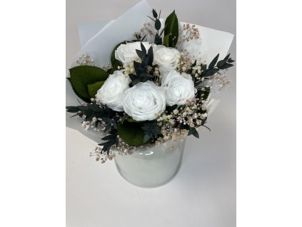 Stabilizovaná kytice Livena je čistota v květinové podobě. Nadčasová elegance v bílých odstínech. Můžete si ji vyskládat ze 3 až 10 růží.